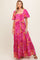 Fuchsia Floral Smocked Short Puff Sleeve Tiered Maternity Maxi Dress