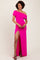 Fuchsia Foldover Off Shoulder Ruched High Slit Maxi Dress