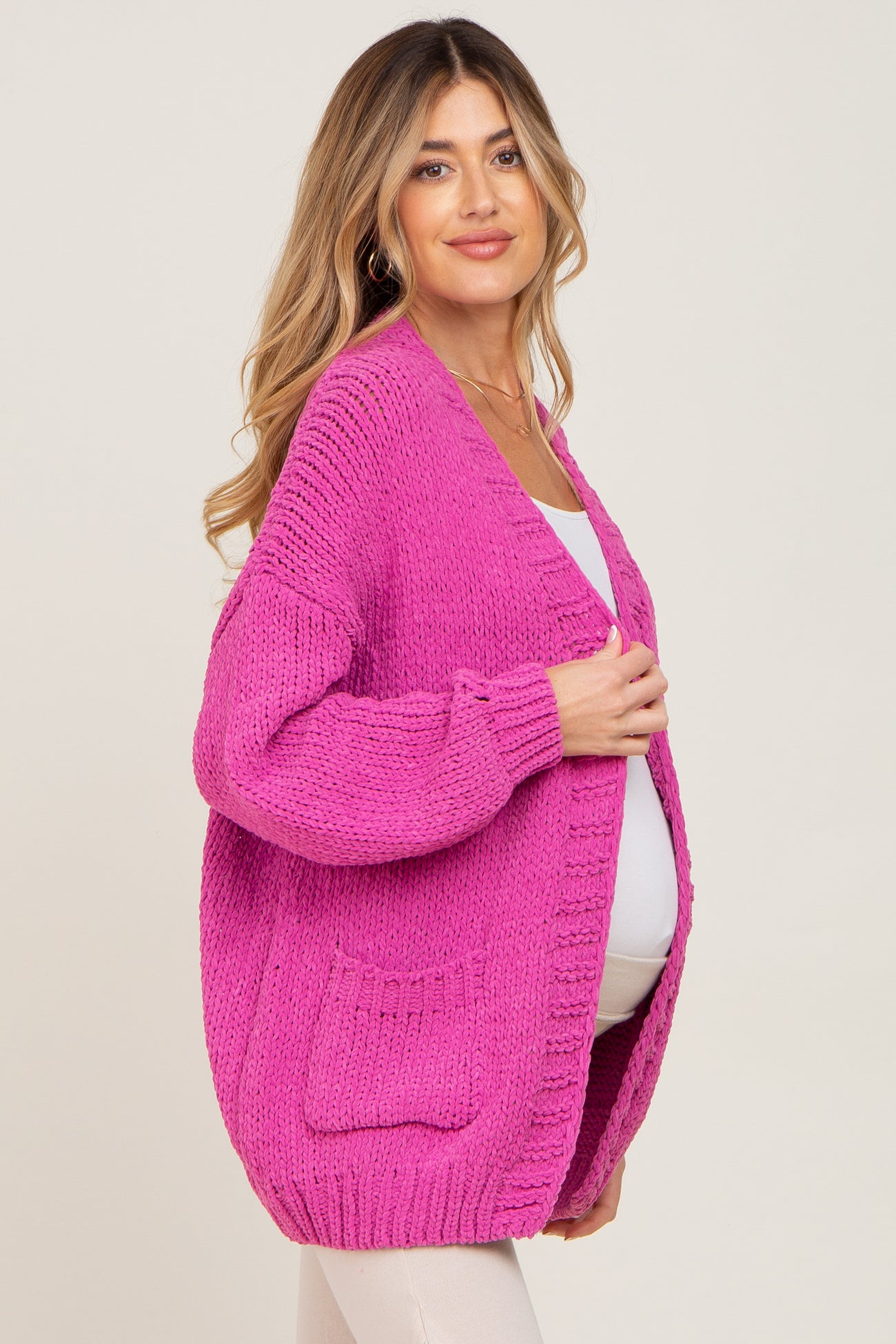 Fuchsia Oversized Bubble Sleeve Maternity Cardigan