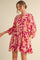Fuchsia Print 3/4 Balloon Sleeve Dress