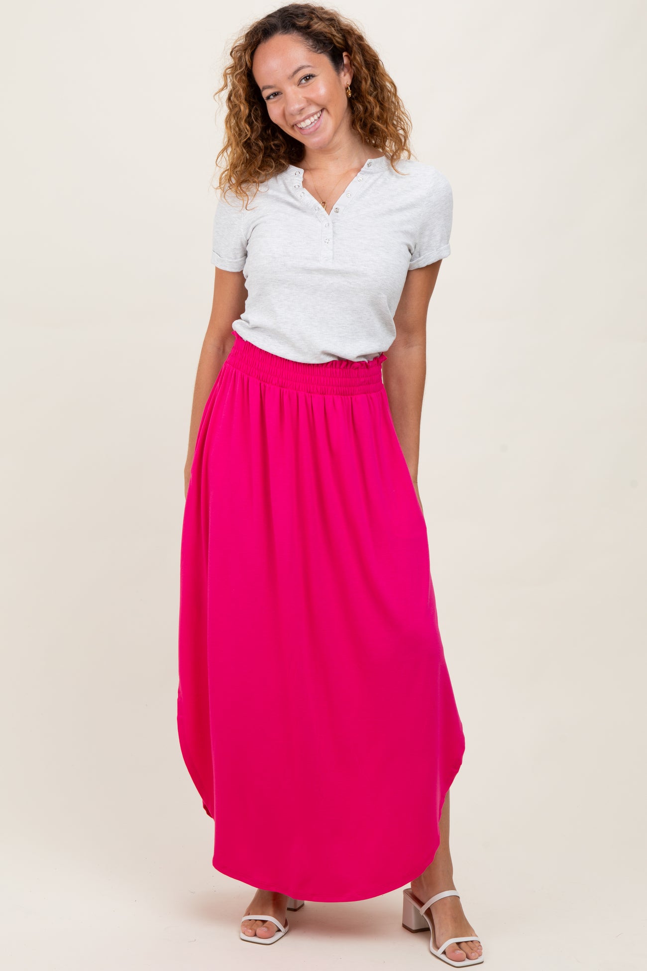 Fuchsia Smocked Rounded Hem Maternity Maxi Skirt