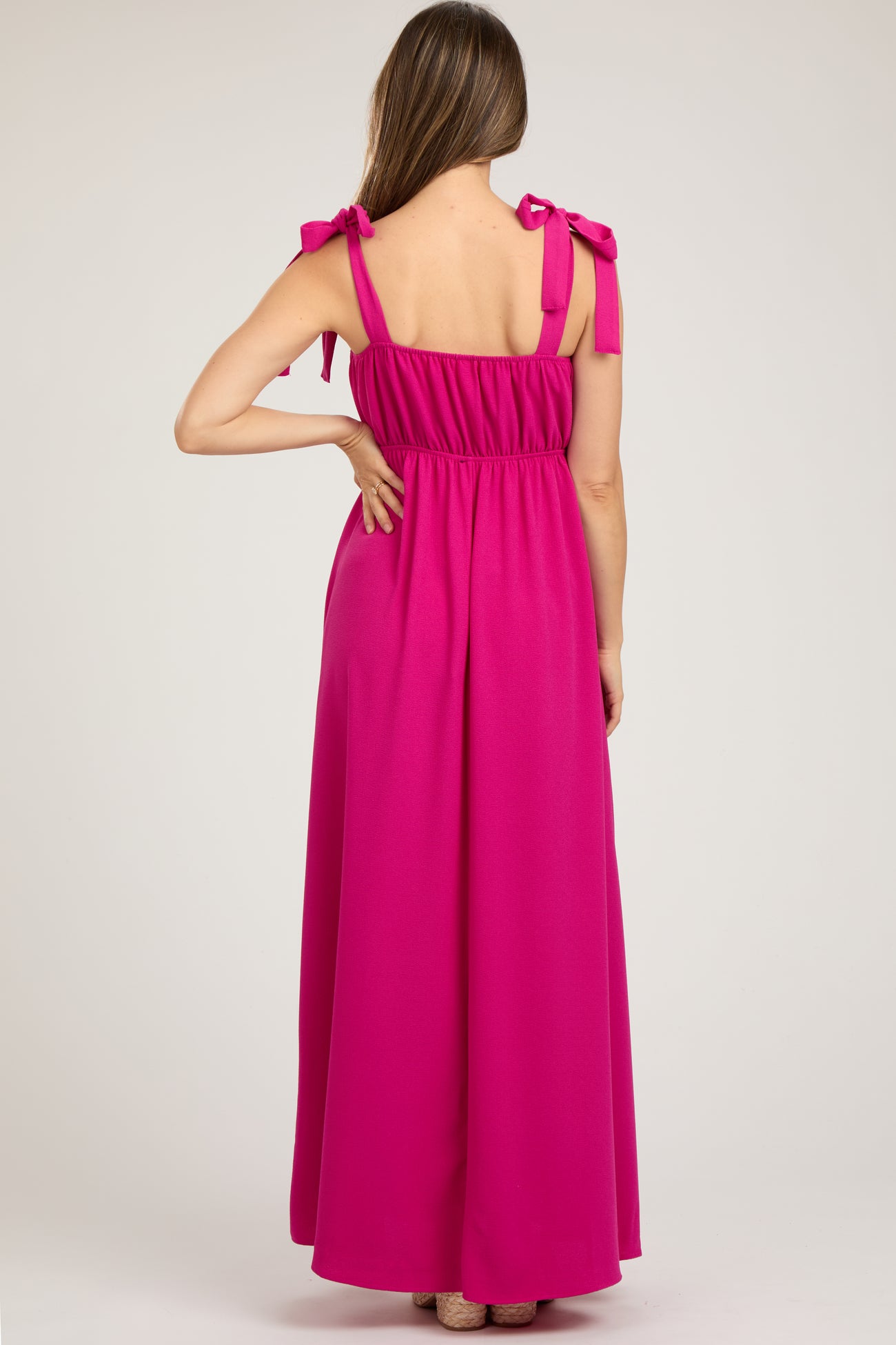 Fuchsia Square Neck Shoulder Tie Maternity Maxi Dress