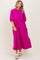 Fuchsia Textured Tiered Puff Sleeve Midi Dress