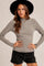 Gray Lettuce Edge Mock Neck Long Sleeve Rib Top