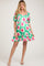 A floral print maternity dress with a sweetheart neckline, puff sleeves smocked back and ruffle hem. Dress is double lined.