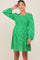 Black floral maternity dress with a rounded neckline, a smocked bodice, long sleeves, and a back keyhole button closure. Skirt is lined.