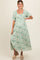 Green Floral Smocked Sweetheart Neck Short Puff Sleeve Maternity Midi Dress