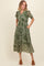 Green Paisley Button Front V-Neck Tiered Midi Dress