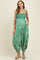 Green Printed Smocked Shoulder Tie Maternity Jumpsuit