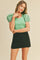 Green Ribbed Knit Contrast Puff Sleeve Top
