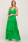 A solid hue maxi dress featuring adjustable straps, a v-neckline, a crossed back accent, and ruffled tiers. Dress is partially lined for coverage.