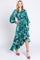 Green Satin Asymmetrical Flounce Trim Midi Dress