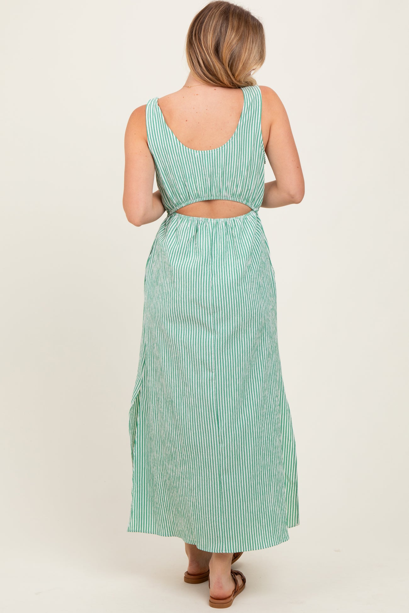 Green Striped Sleeveless Cutout Side Slit Maxi Dress