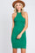 Details A textured knit fitted dress featuring a halter neckline and fully lined. Content + Care
