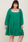 Details A solid hue plus size dress featuring a scoop neckline, long sleeves, a tiered body, and side pockets. Content + Care
