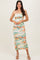 Green Watercolor Floral Mesh Ruched Sleeveless Dress