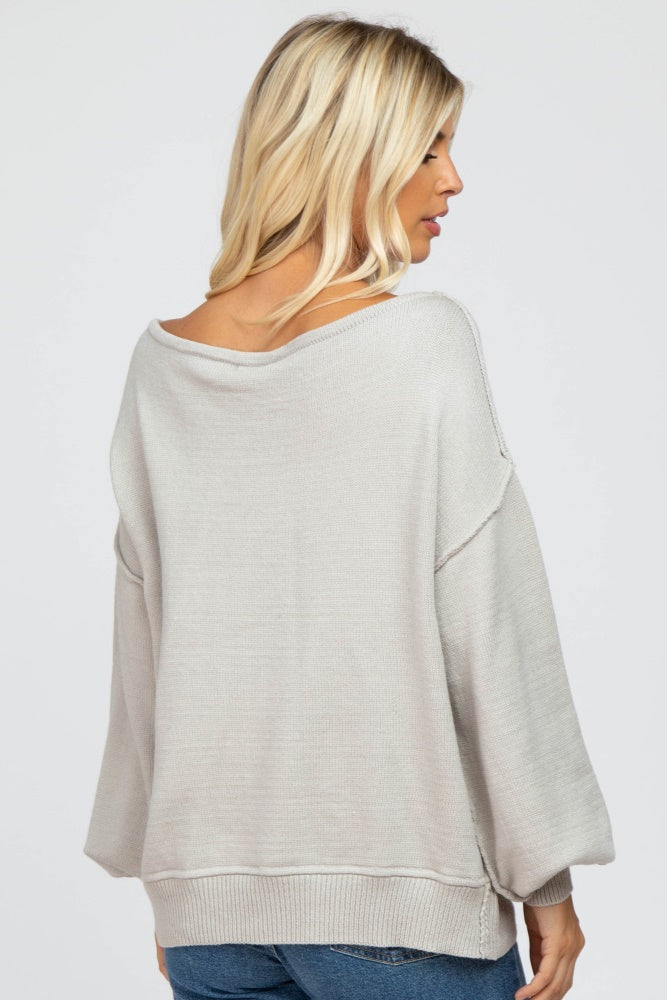 Grey Boat Neck Bubble Sleeve Sweater