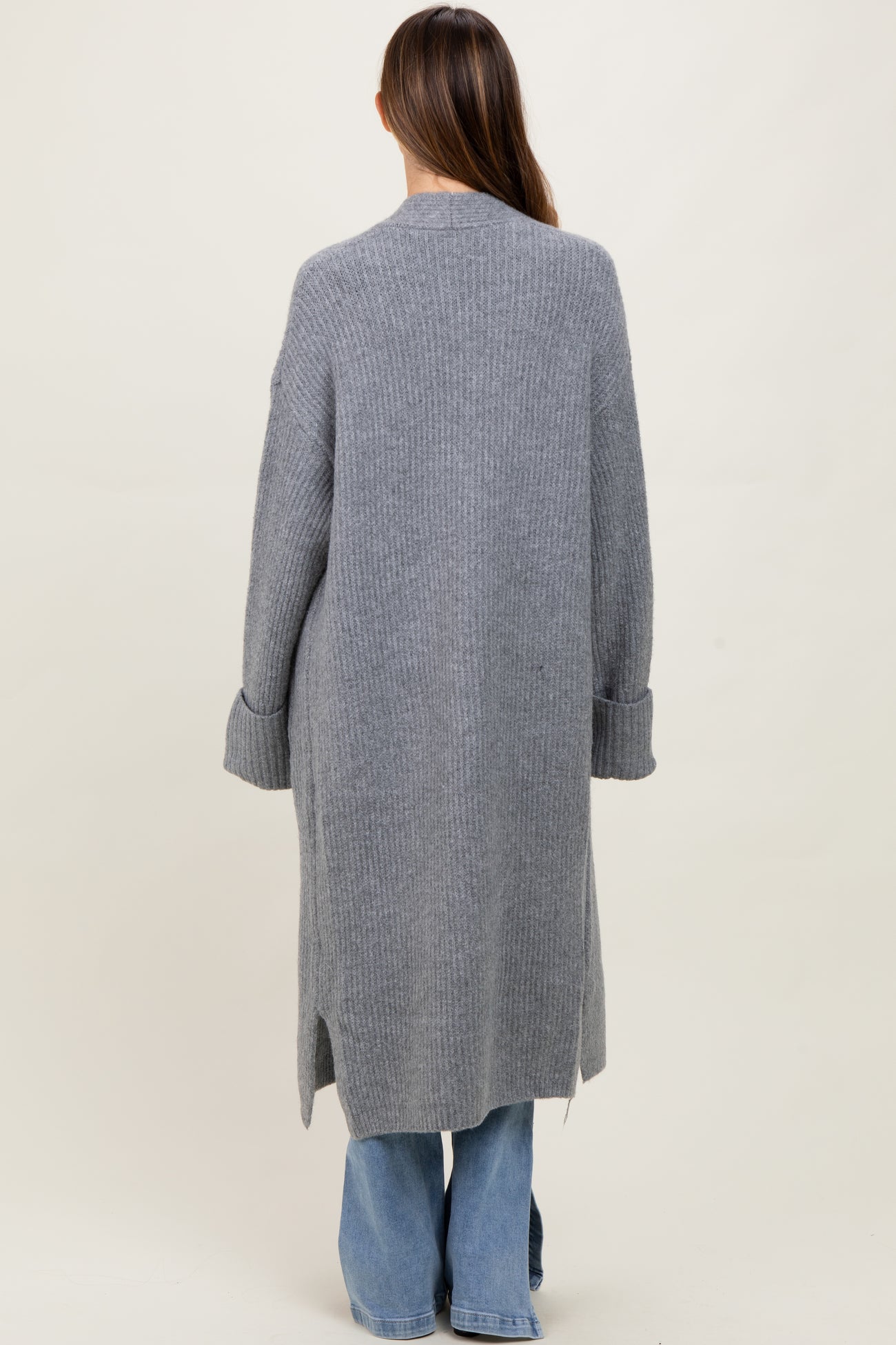 Grey Ribbed Chunky Knit Long Oversized Maternity Cardigan