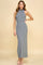 A solid ribbed sleeveless maxi dress featuring side slits and a rounded neckline.