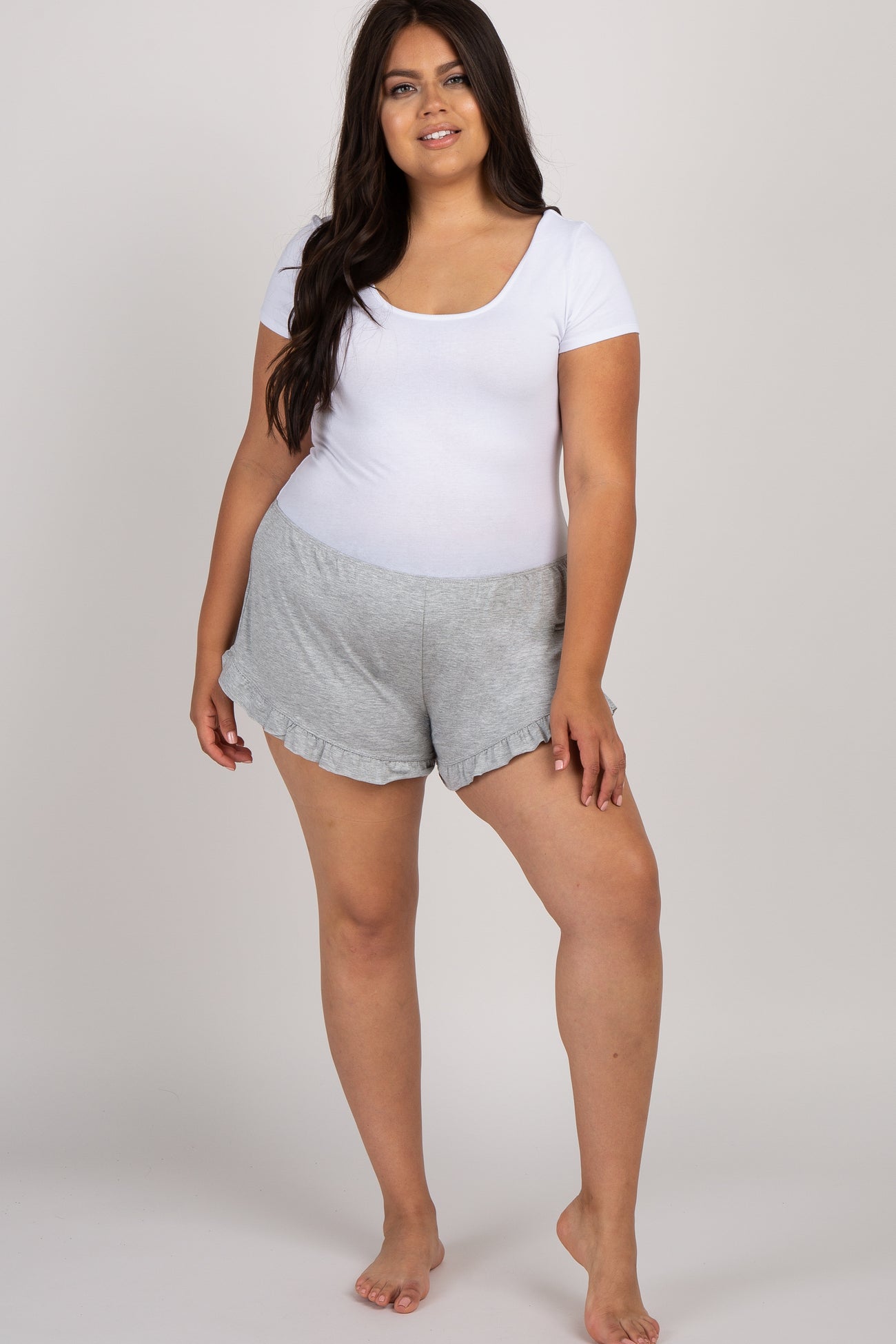 Grey Ruffled Trim Maternity Plus Pajama Shorts