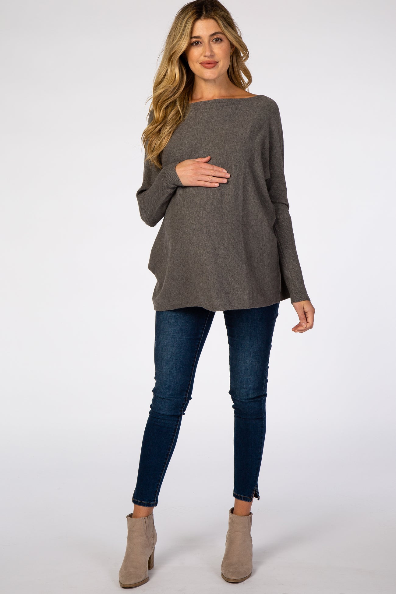 Grey Soft Knit Boatneck Dolman Sleeve Maternity Sweater