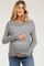 An open knit maternity top with a rounded neckline and long drop shoulder sleeves.
