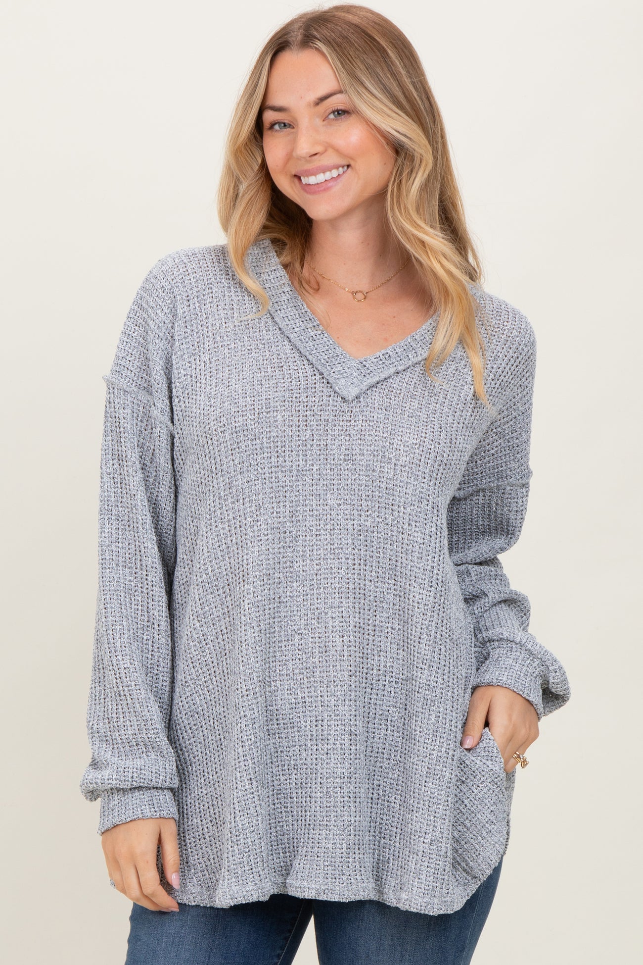 Stay cozy and stylish with our Heather Gray Long Puff Sleeve Solid Oversized Top. Crafted from a soft, waffle-knit fabric, this relaxed-fit top features a flattering V-neckline and long puff sleeves that add a touch of feminine flair. The oversized silhouette offers all-day comfort, perfect for layering or wearing on its own. Versatile and easy to pair, it’s a must-have for your casual wardrobe. Wear it with your favorite jeans or leggings for a laid-back, effortlessly chic look. Ideal for cool days, this top combines warmth and style in one perfect piece.