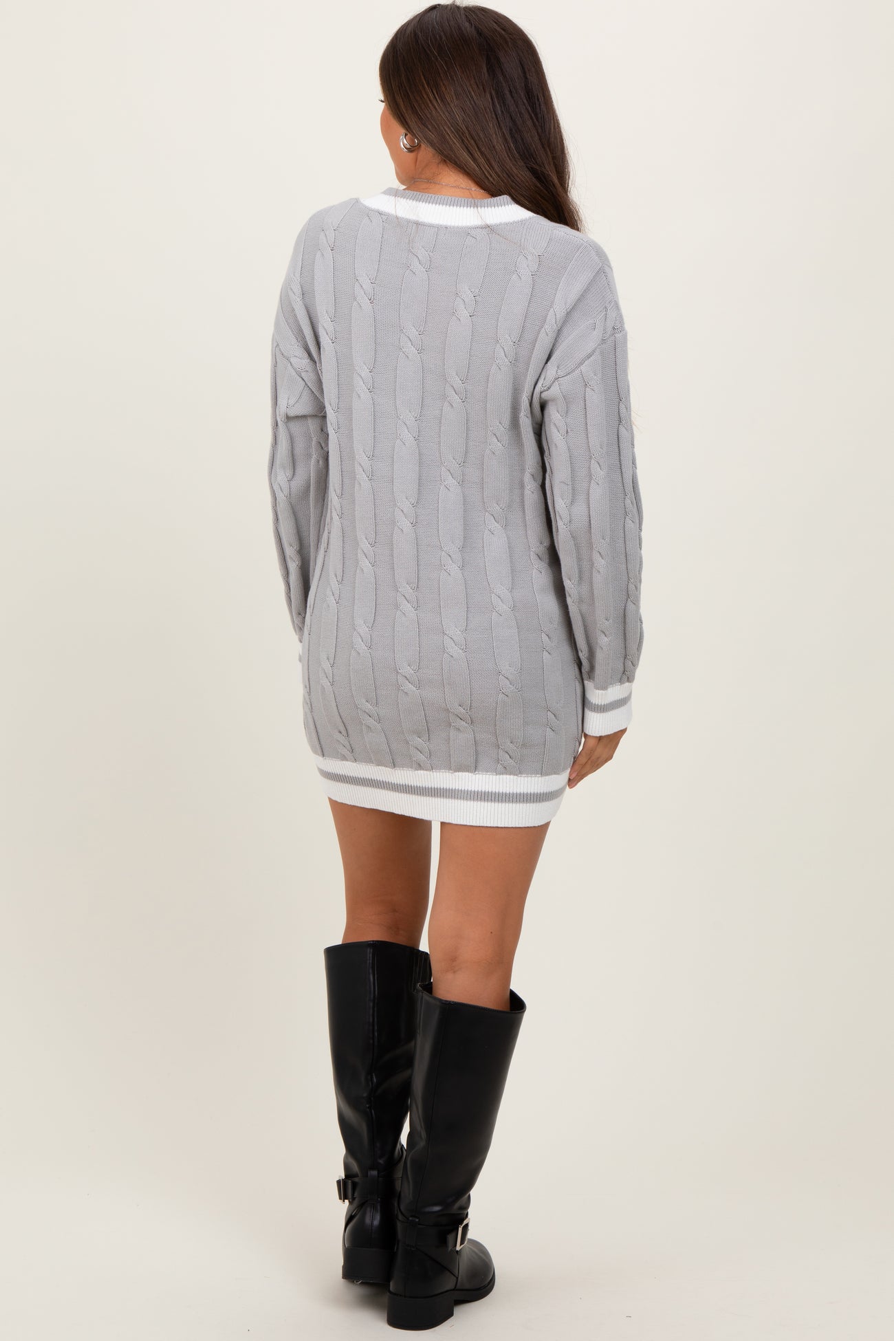 Heather Grey Cable Knit Maternity Sweater Mini Dress