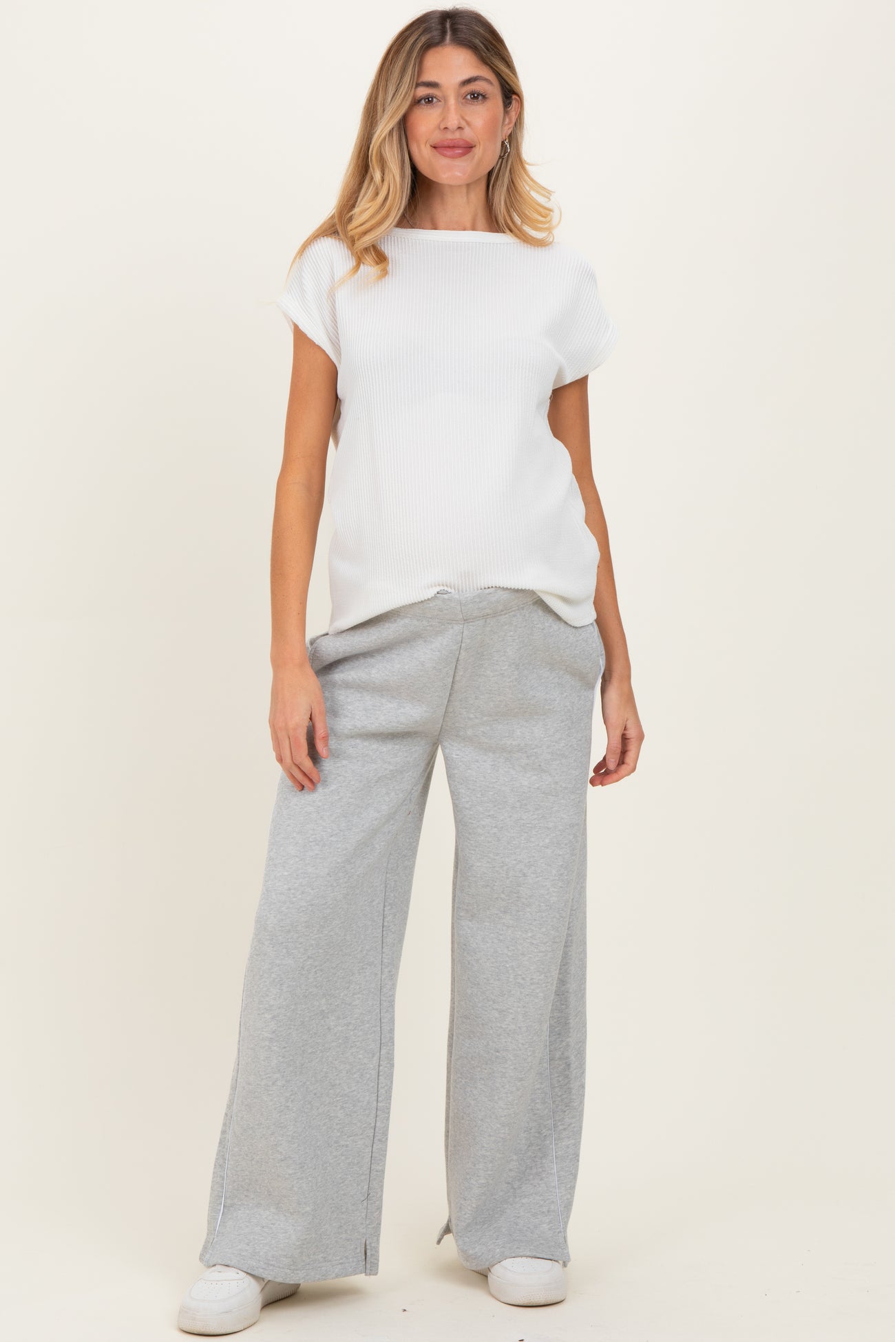 Heather Grey Fleece Wide Leg Maternity Sweatpants
