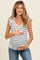 Ivory/Black Striped Ribbed V-Neck Shoulder Tie Sleeveless Maternity Top