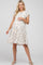 A floral printed and embroidered maternity dress with short cap sleeves, a rounded neckline, a tiered skirt, and a back keyhole closure. Dress is lined to prevent sheerness.