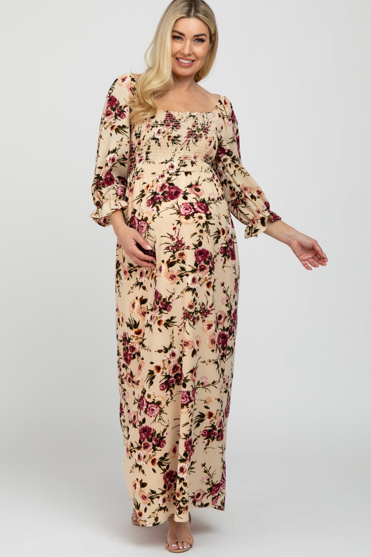 Ivory Floral Smocked Bust Maternity Maxi Dress