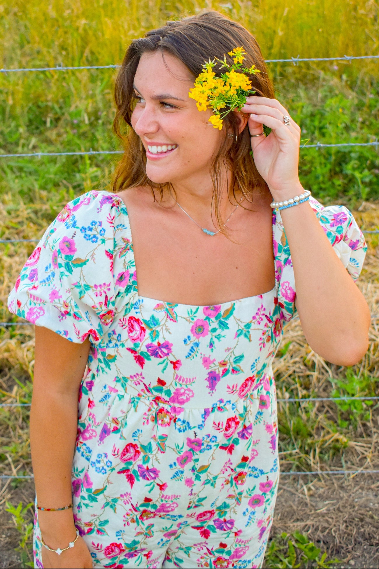 Ivory Floral Wide Leg Puff Sleeve Jumpsuit