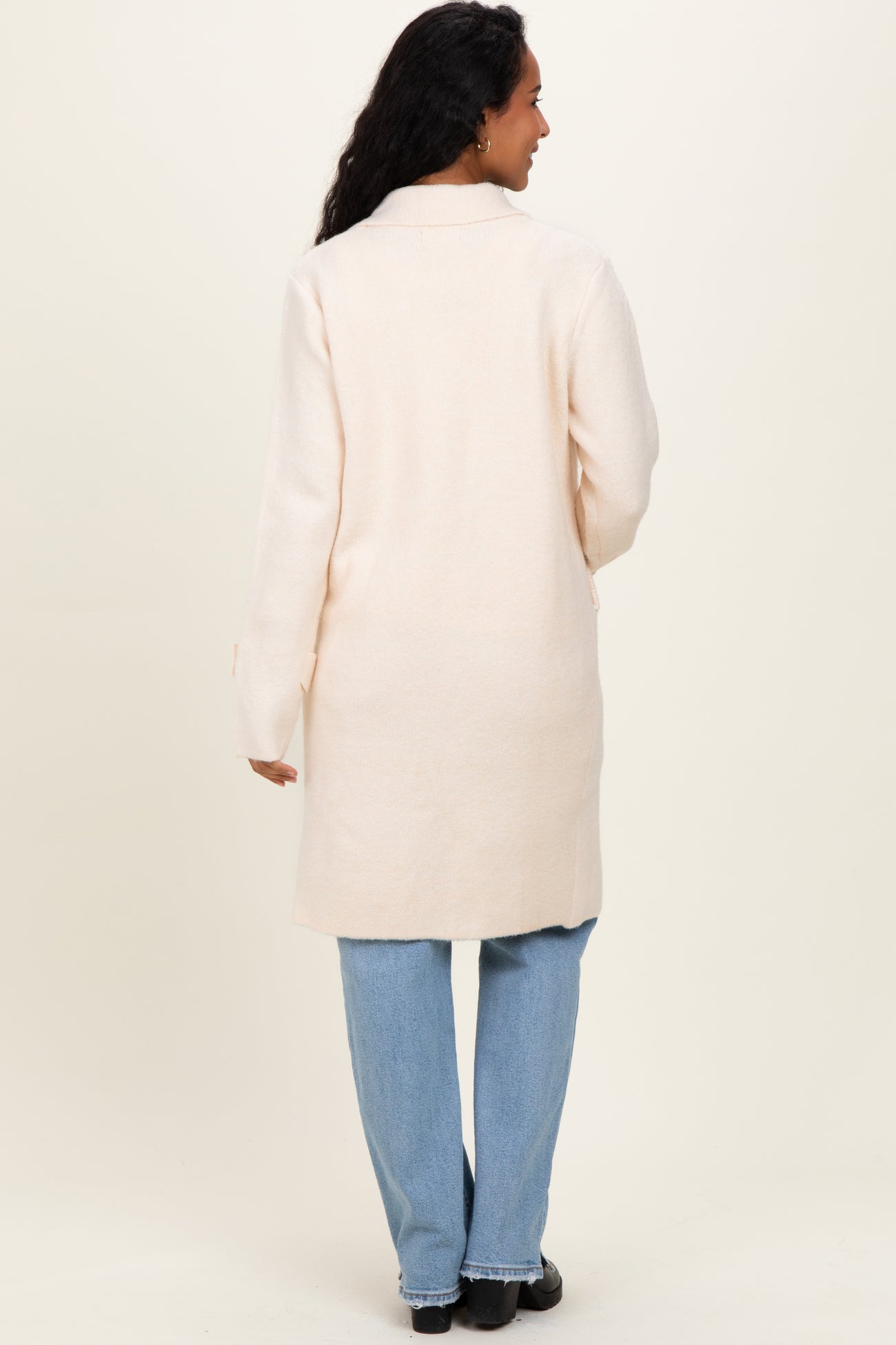 Ivory Knit Long Maternity Sweater Coat