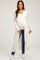 A rib knit maternity cardigan with long sleeves, front pockets, and side slits.