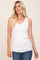A ribbed sleeveless tank top featuring ruched sides and a v-neckline.