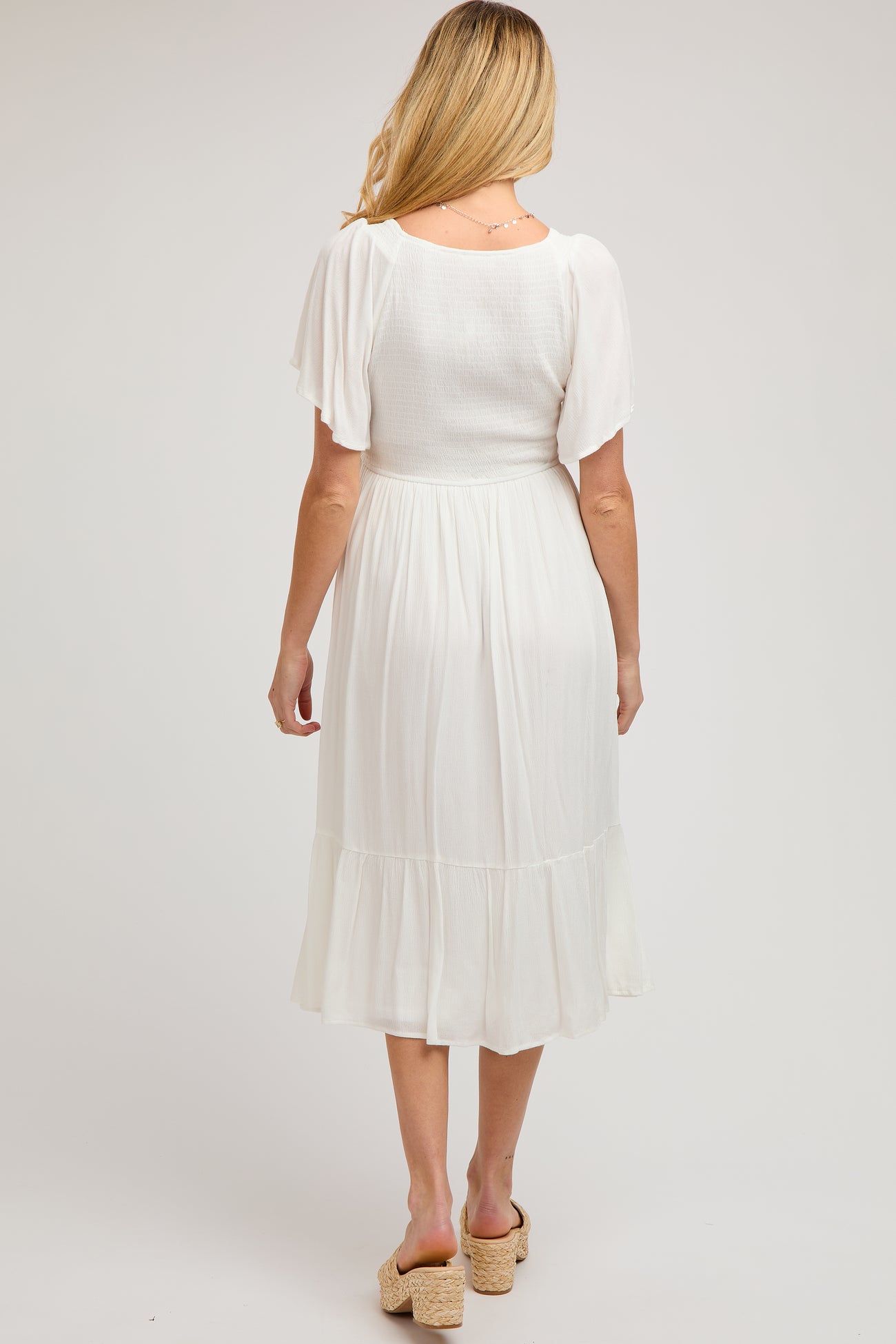 Ivory Smocked Ruffle Maternity Dress