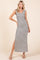 Ivory Striped Ribbed Sleeveless Side Slit Maxi Dress