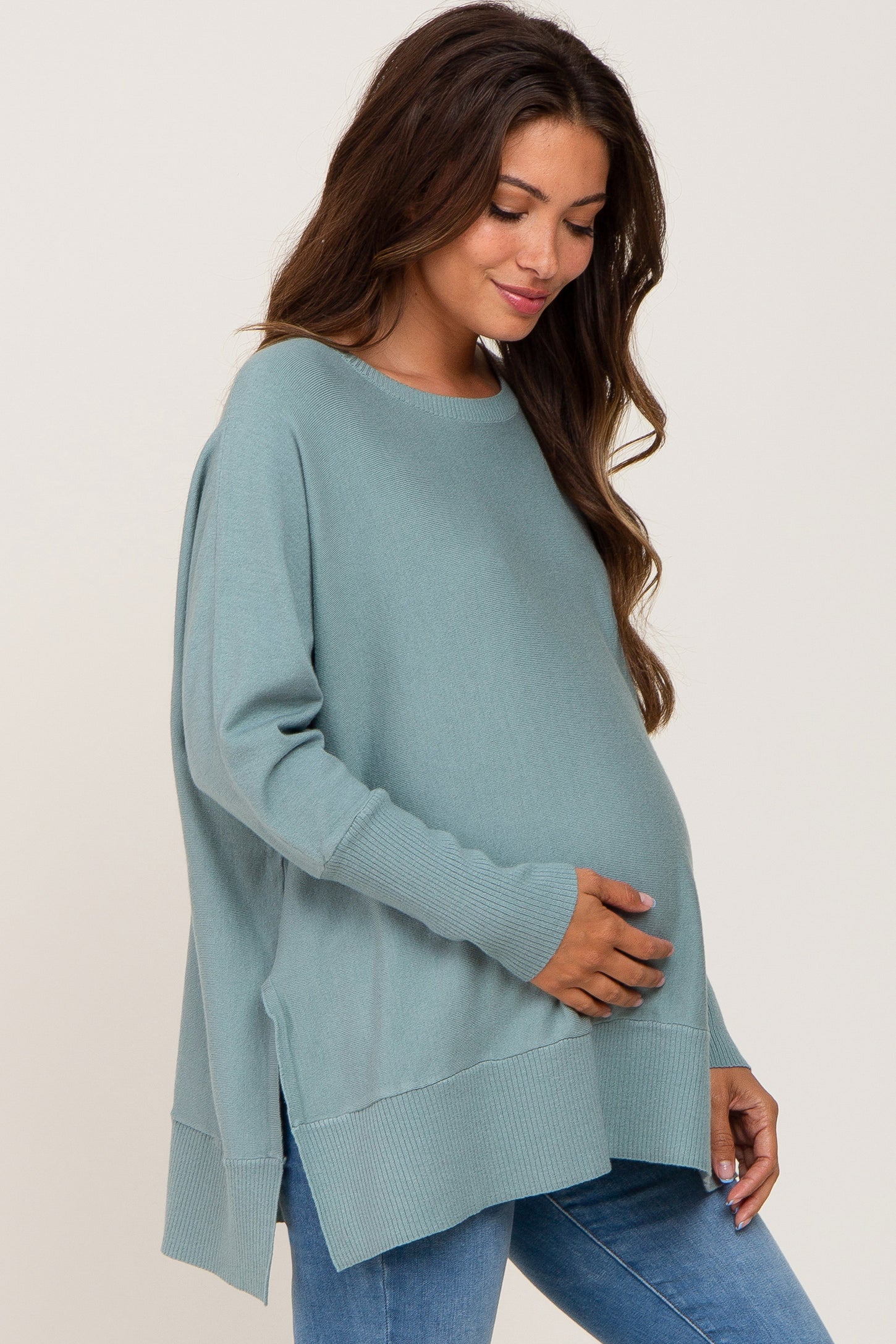 Jade Dolman Sleeve Side Slit Maternity Sweater