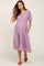 A maternity dress featuring a button down front, a tiered body, short puff sleeves, side pockets and a v-neckline.
