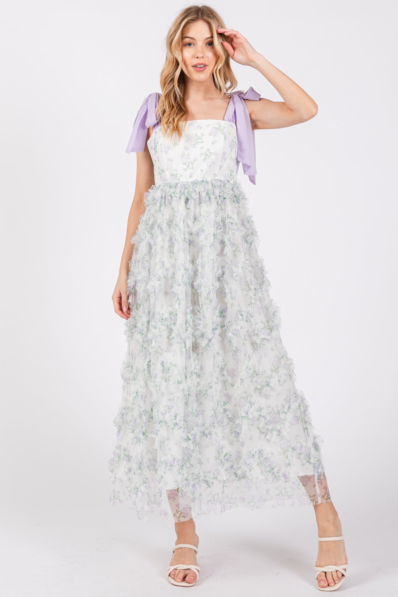 Lavender Floral Ruffle Tiered Maternity Maxi Dress