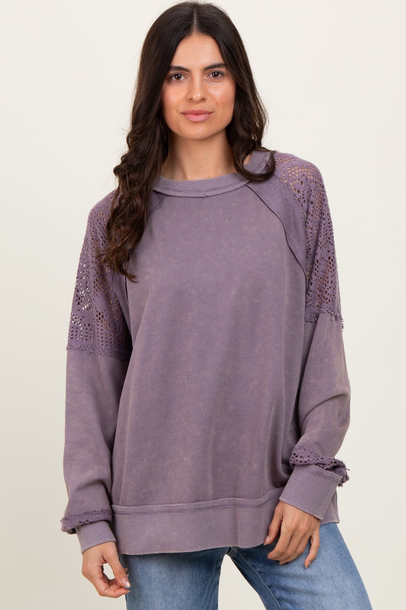 Elevate your casual wardrobe with our Lavender Lace Inset Exposed Seam Pullover Top. Crafted in a soft, comfortable fabric, this pullover features delicate lace insets on the sleeves that add a touch of feminine charm. The exposed seam detailing along the raglan sleeves and cuffs gives it a trendy, laid-back vibe perfect for everyday wear. Its relaxed fit pairs effortlessly with jeans or leggings for a cozy, stylish look. Available in a beautiful lavender hue, this top is a must-have for layering or wearing on its own all year round. Embrace comfort and style with this versatile pullover!
