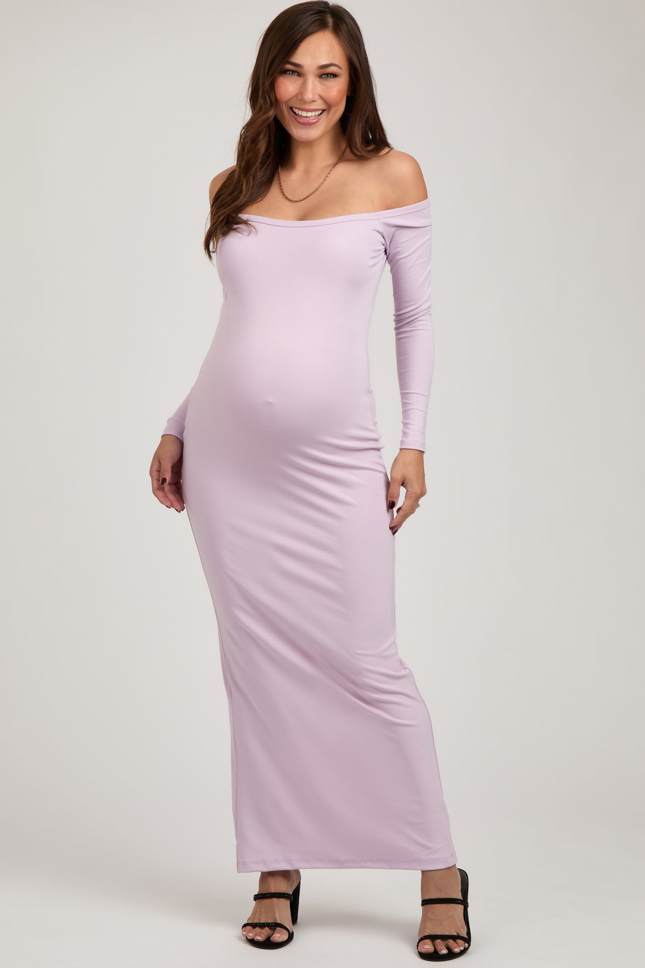 Lavender Off Shoulder Long Sleeve Maternity Maxi Dress