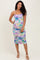 Lavender Printed Ruched Crisscross Back Maternity Midi Dress