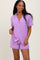 Lavender Short Sleeve Button Down Shirt Shorts Set
