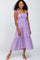 Details A solid midi dress with a smocked bodice, adjustable shoulder ties, and a ruffle accent tiered skirt. Content + Care