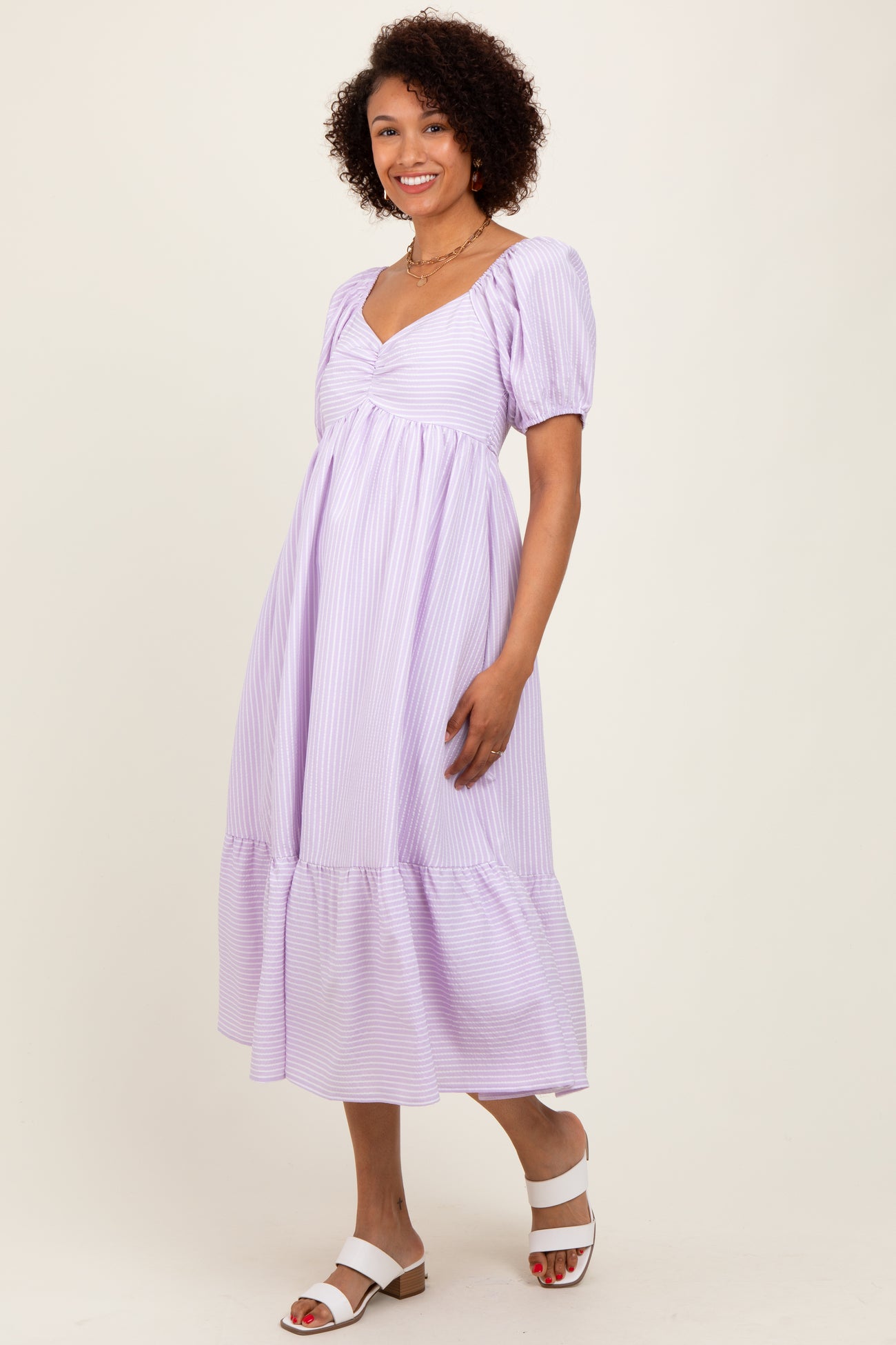 Lavender Sweetheart Stripe Smocked Back Midi Dress