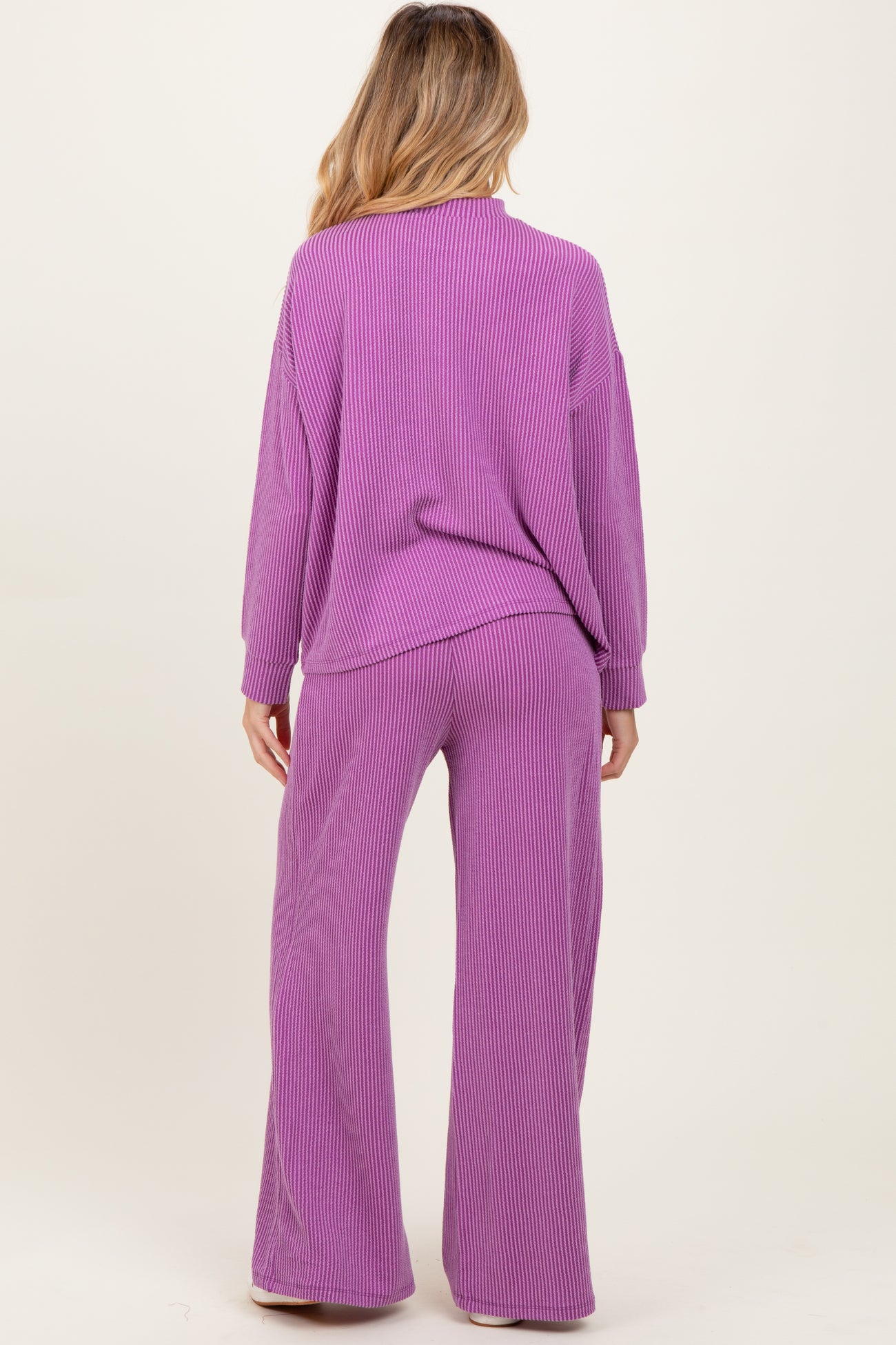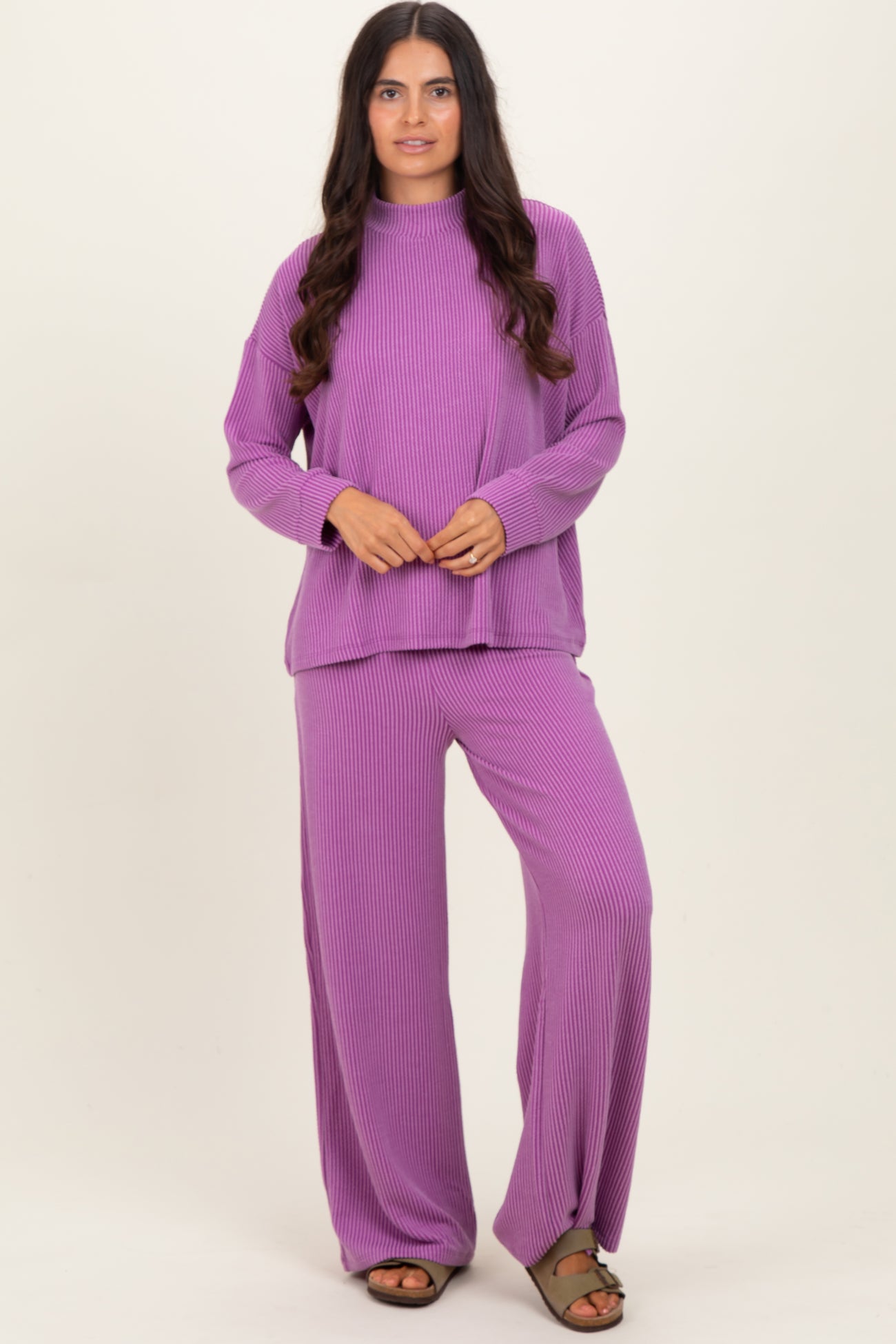 Lavender Textured Rib Mock Neck Long Sleeve Pants Maternity Set