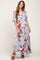 A floral print maternity maxi dress featuring a ruffle off shoulder neckline.