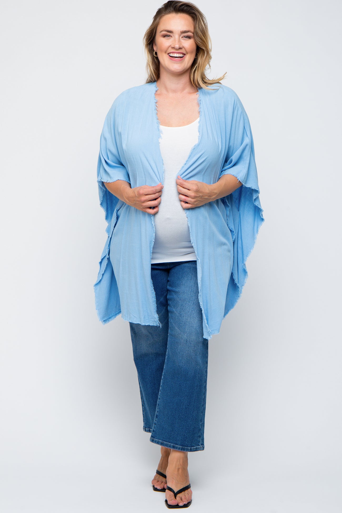 Light Blue Fringe Maternity Plus Dolman Sleeve Cover Up